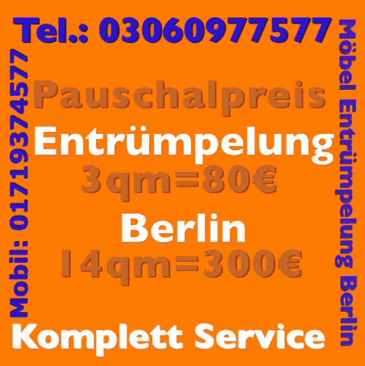 Ebenso wird eine BSR Sperrmüllentsorgung BSR in Sperrmüllentsorgung BSR unmittelbar einmal vonnöten. Mit uns als Partner lässt sie dies gleichermaßen ohne langfristige Planung fix angenehm erfüllen. Mit unseren Sperrmüllentsorgung BSR Offerten Entrümpelungsdienst Sperrmüllabholung Berlin, Möbel Sperrmüllentsorgung BSR und auf Film Sperrmüllentsorgung BSR und Fotos von Sperrmüllentsorgung BSR Sperrmüll Berlin, erhalten Sie Ihre Emtrümpelung fachmännisch zum vereinbarten Preis. Wohnung Sperrmüllentsorgung BSR in Sperrmüllentsorgung BSR oder Möbel Sperrmüllentsorgung BSR in Sperrmüllentsorgung BSR werden jeweils im Kontext unseres Abtransport-Sofortdienstes mit einem neuen Sprinter Fahrzeug durchgeführt und hierdurch zu einem bequemen Projekte zum exklusiven Hammerpreis. Bei uns stimmen Angebot, Preis, Leistung, Service. Einnehmen Sie sich und telefonieren Sie uns an. Unser professionelle Wohnungsentrümpelung Berlin Service ist zu jedem beliebigen Zeitpunkt erreichbar und steht zu Ihrem Wunschtermin für sämtliche Arbeiten rundum Sperrmüllentsorgung BSR inkl. Wohnungsentrümpelung Abholung in Sperrmüllentsorgung BSR zur Auswahl.